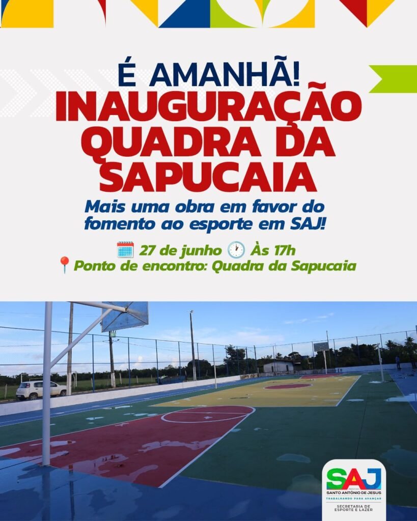 Evento será realizado na quinta-feira (27), às 17h00, na Sapucaia A prefeitura Municipal de Santo Antônio de Jesus, através da Secretaria de Esportes e Lazer (SEEL) e a Superintendência de Convênios (SUCONV), realizará a inauguração da Quadra Poliesportiva da Sapucaia. O evento, que marcará a entrega de mais um importante equipamento público para a comunidade, […]