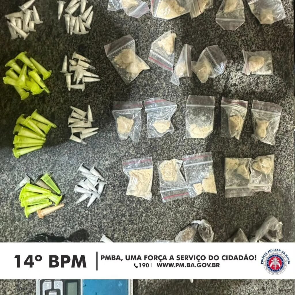 Na noite do sábado, 24ago2024, guarnição da Companhia de Emprego Tático Operacional do 14° Batalhão PM, em rondas no Alto Santo Antônio, deteve dois adolescentes por ato infracional análogo a tráfico de drogas. MATERIAL – 01 (uma) Balança de precisão; – 25 (vinte e cinco) pedras de crack; – 102(cento e dois) pinos de cocaína; […]