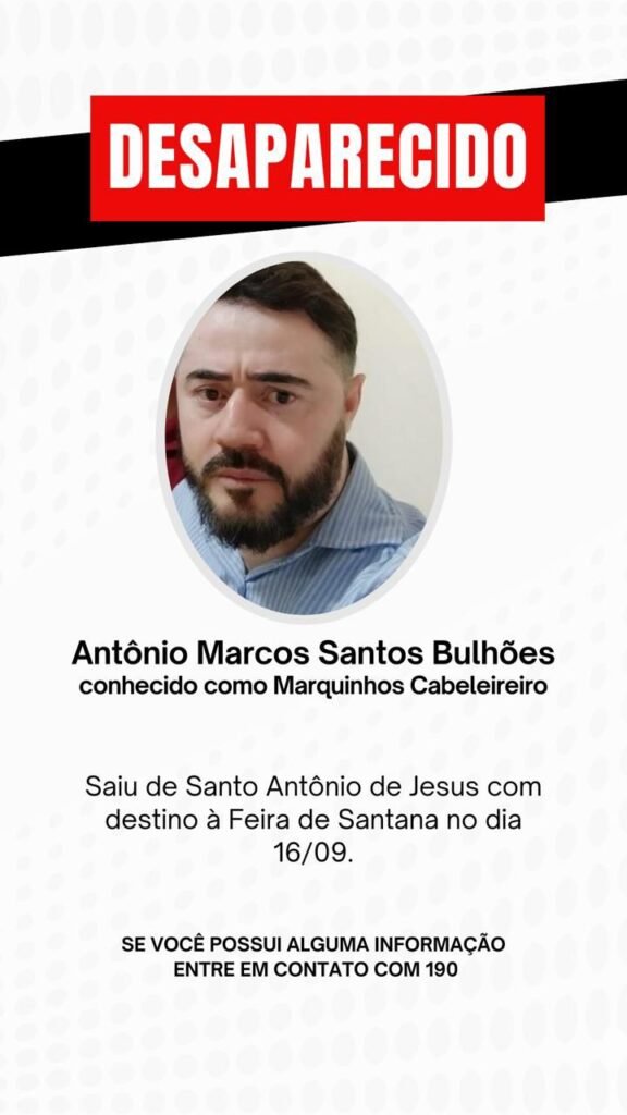 Cabeleireiro de Santo Antônio está desaparecido. Segundo informações de @fabiobulhoes.imoveis irmão de Antônio Marcos o desaparecido, ele fez uma viagem a cidade de Feira de Santana e os familiares não tiveram mais contato com ele desde a segunda feira quando o mesmo fez uma viagem para Feira de Santana . Os familiares estão desesperados e […]