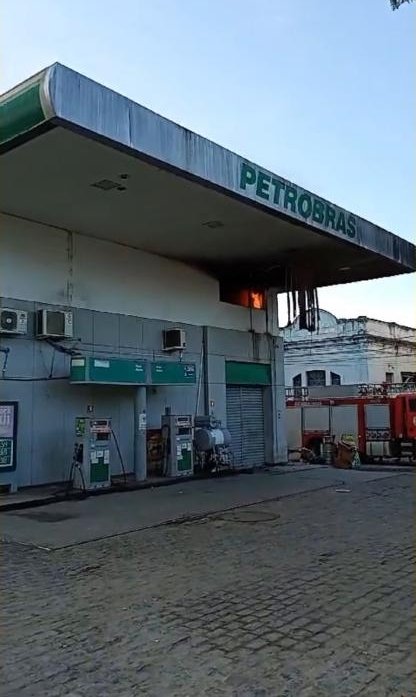 SAJ: Incêndio em restaurante de posto de gasolina na Praça Félix Gaspar é combatido pelo Corpo de Bombeiros