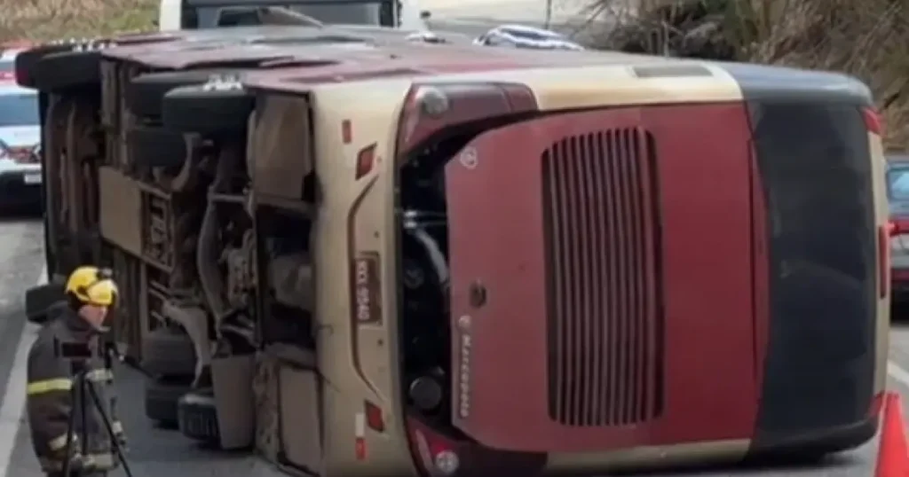 Ônibus com 58 estudantes com destino à Porto Seguro tomba e deixa feridos