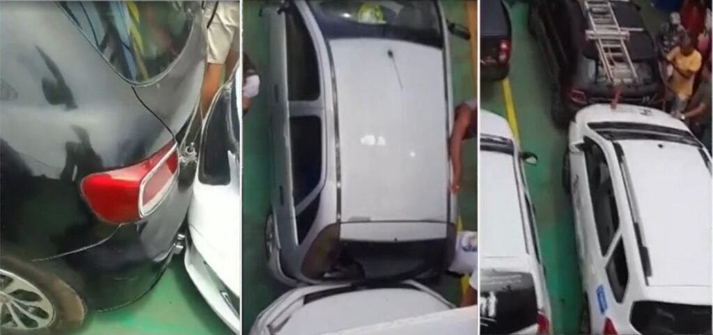 Motorista perde controle do carro e causa engavetamento dentro de ferry boat