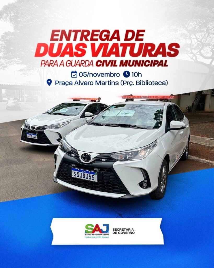 Prefeitura de Santo Antônio de Jesus realizará entrega de duas novas viaturas para a Guarda Municipal