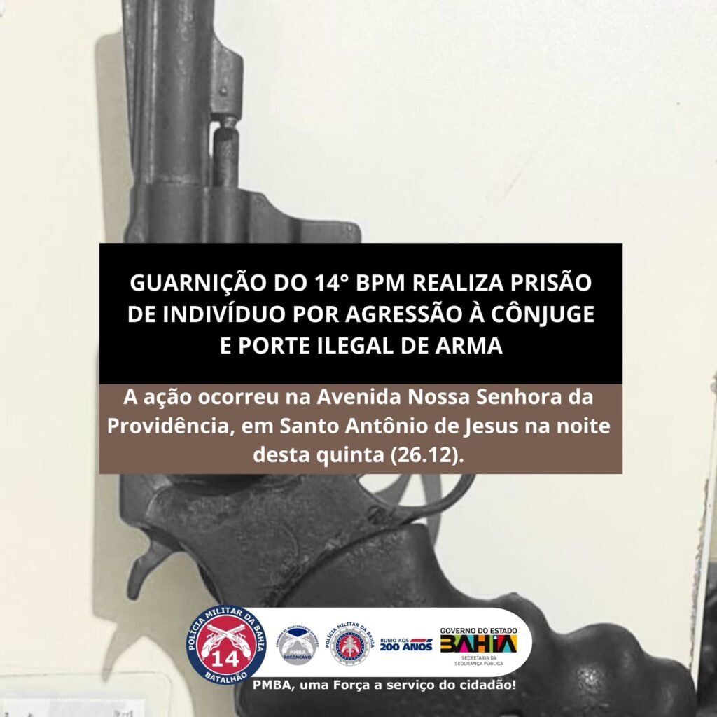 A Guarnição do 14⁰ BPM – [1ª Cia PP] foi acionada pelo CICOM para averiguar uma situação de violência doméstica e uso de arma de fogo, envolvendo um indivíduo que estava em gozo de indulto natalino na Av. Providência em Santo Antônio de Jesus. No local, o elemento foi flagrado destruindo o interior da residência, […]
