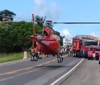 Helicóptero dos bombeiros resgata vítima de acidente veicular em Itaparica, outros três feridos foram socorridos pelo Samu