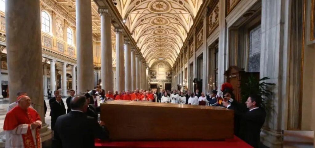 Fiéis e turistas lotam a praça em frente à Basílica de Santa Maria Maior, em Roma, onde teve início neste sábado (26) a celebração do rosário. Um altar com o retrato de Maria foi montado na escadaria da igreja, que agora guarda a sepultura do papa Francisco. A basílica será reaberta ao público e retomará […]