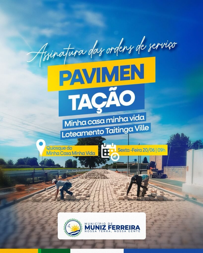 Já pode dar play na Pavimentação do Minha Casa Minha Vida e do Loteamento Taitinga Ville. Nesta sexta-feira (20), um dia antes da abertura oficial do São João de Muniz Ferreira, o prefeito Gileno Pereira vai assinar as ordens de serviço que autorizam o início das obras de pavimentação com paralelepípedos nas comunidades do programa […]