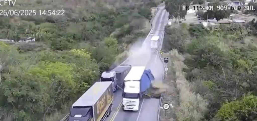 Cinco pessoas ficaram feridas após uma carreta desgovernada atingir um carro e arremessá-lo de uma ponte na BR-116, na altura da cidade de Cândido Sales, no sudoeste da Bahia. O acidente aconteceu na quinta-feira (26) e foi registrado por uma câmera de segurança. De acordo com a Polícia Rodoviária Federal (PRF), a carreta perdeu os […]