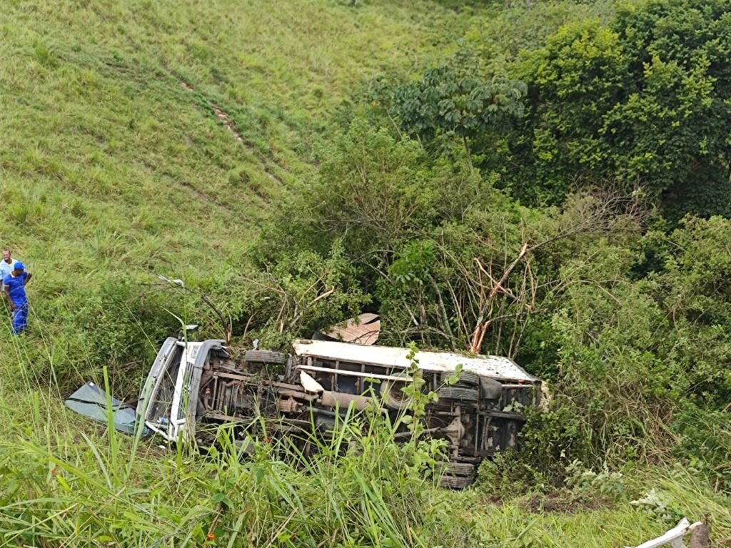 Carreta sem freio arremessa carro de ponte e fere cinco pessoas em rodovia na Bahia