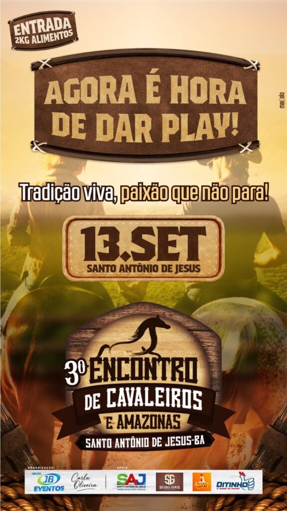 🎬 AGORA É HORA DE DAR O PLAY! 🐎 Vem aí o 3º Encontro de Cavaleiros e Amazonas, o maior evento de cavalgada do Recôncavo! 🤠 Cultura, tradição e economia se encontram mais uma vez em Santo Antônio de Jesus — a capital da cavalgada! 🗓 13 de setembro (sábado), a partir das 14h […]