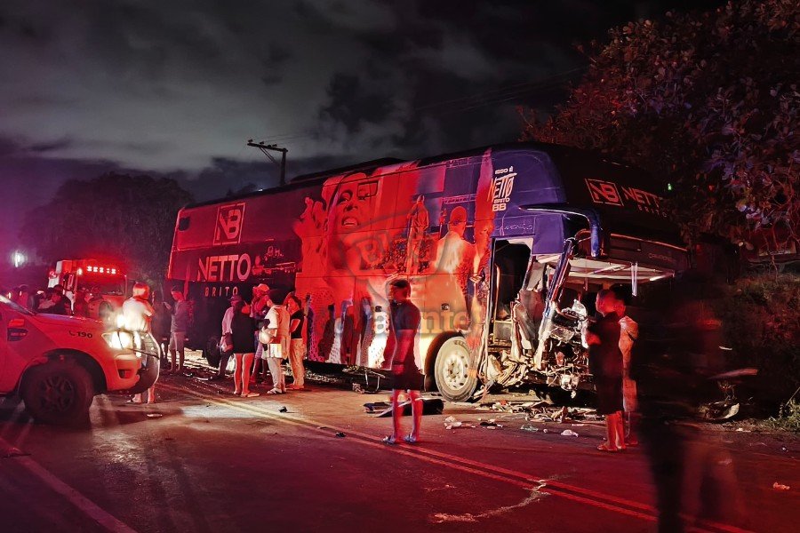Grave acidente entre ônibus da banda de Neto Brito e carro de passeio deixa mortos na BA-046