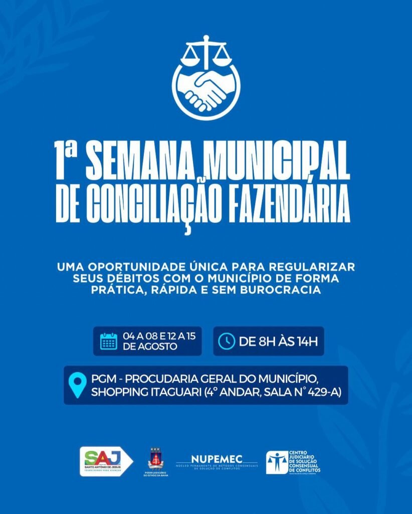 Prefeitura de Santo Antônio de Jesus realizará a 1ª Semana Municipal de Conciliação Fazendária