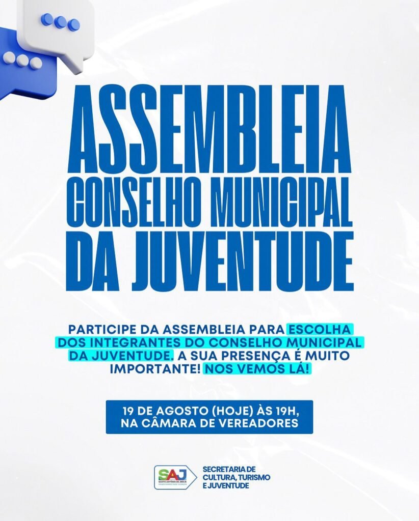 Evento será realizado na noite desta terça-feira (19), a partir das 19 horas, na Câmara de Vereadores A Prefeitura Municipal de Santo Antônio de Jesus, por meio da Secretaria de Cultura, Turismo e Juventude, convida toda a população para participar da Assembleia de escolha dos integrantes do primeiro Conselho Municipal da Juventude, que será instituído […]