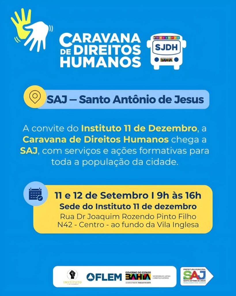 Prefeitura de Santo Antônio de Jesus participará da Caravana de Direitos Humanos promovida pela SJDH, em parceria com o Instituto 11 de Dezembro