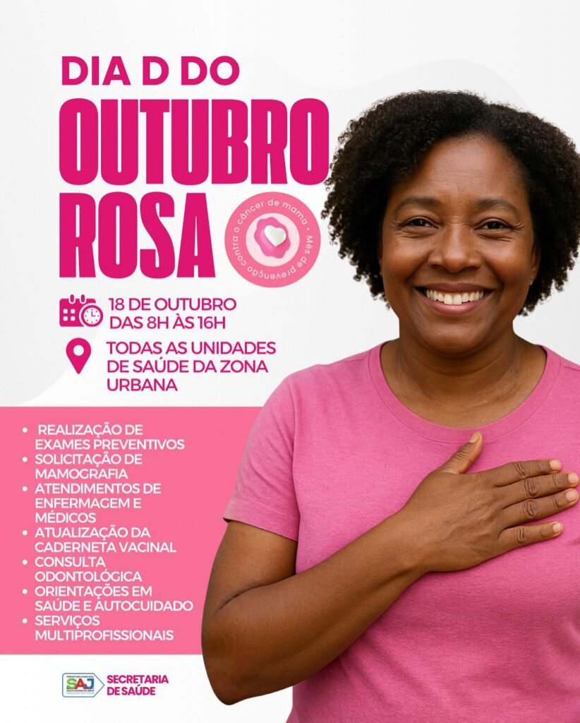 Prefeitura de Santo Antônio de Jesus realizará Dia D do Outubro Rosa com ações de cuidado e prevenção à saúde da mulher
