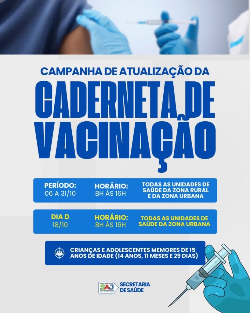 Dia D acontece em 18 de outubro, das 8h às 16h, em todas as unidades de saúde da zona urbana A Prefeitura Municipal de Santo Antônio de Jesus, por meio da Secretaria Municipal de Saúde (SMS), realizará a Campanha de Atualização da Caderneta de Vacinação entre os dias 6 e 31 de outubro. A ação […]