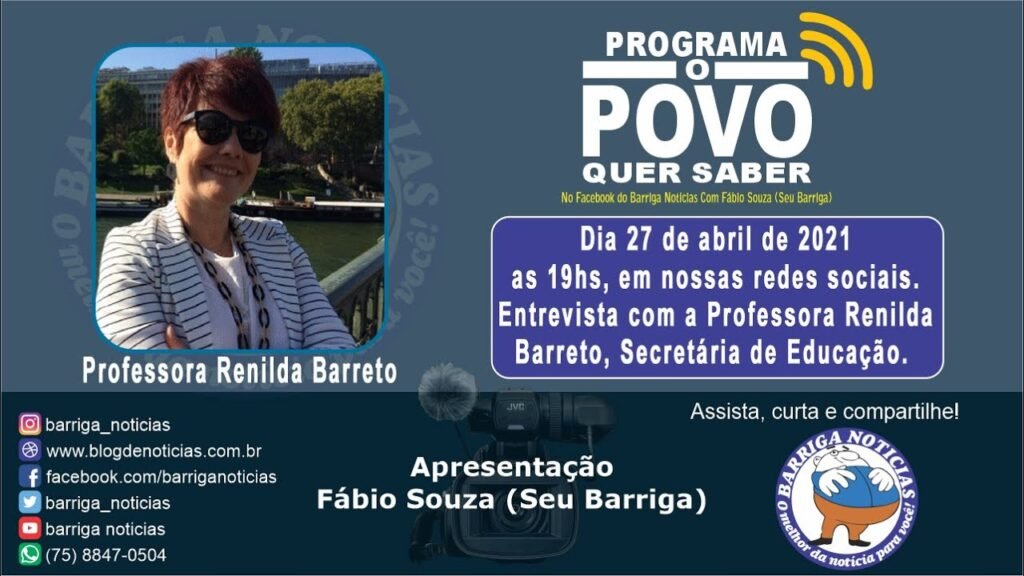 Barriga Notícias – Programa o Povo Quer Saber conversa hoje com a secretária de Educação de Saj, Professora Renilda Barreto.