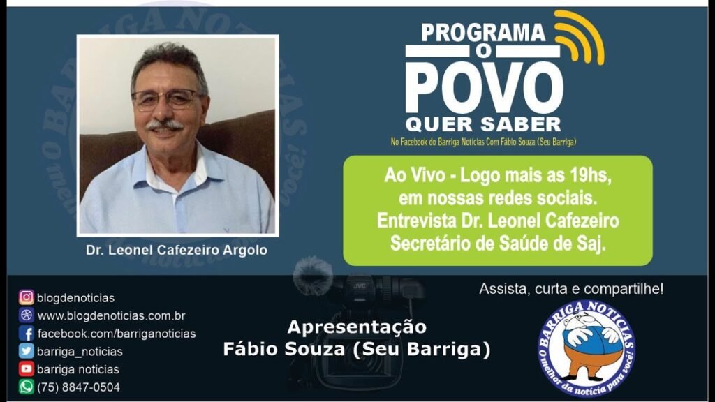 Barriga Notícias – Programa o Povo Quer Saber conversa hoje com o Secretário de Saúde de Santo Antônio de Jesus, Dr. Leonel Cafezeiro