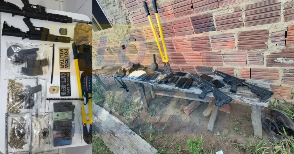 Uma operação conjunta das Polícias Civil e Militar da Bahia resultou na apreensão de armas de grosso calibre, drogas e munições, nesta quinta-feira (9), na zona rural do município de Iguaí, no sudoeste do estado. A ação faz parte das investigações sobre o duplo homicídio que vitimou Mirella Oliveira Moreira, de 19 anos, e Gustavo […]