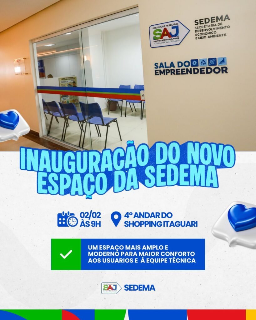 Mudança oferece ambiente mais amplo e moderno, sem custos para a Prefeitura ou para o município A Prefeitura Municipal de Santo Antônio de Jesus realizará a reinauguração do novo espaço da Secretaria de Desenvolvimento Econômico e Meio Ambiente (SEDEMA). A unidade passa a funcionar em um ambiente mais amplo e estruturado, localizado no 4º andar […]