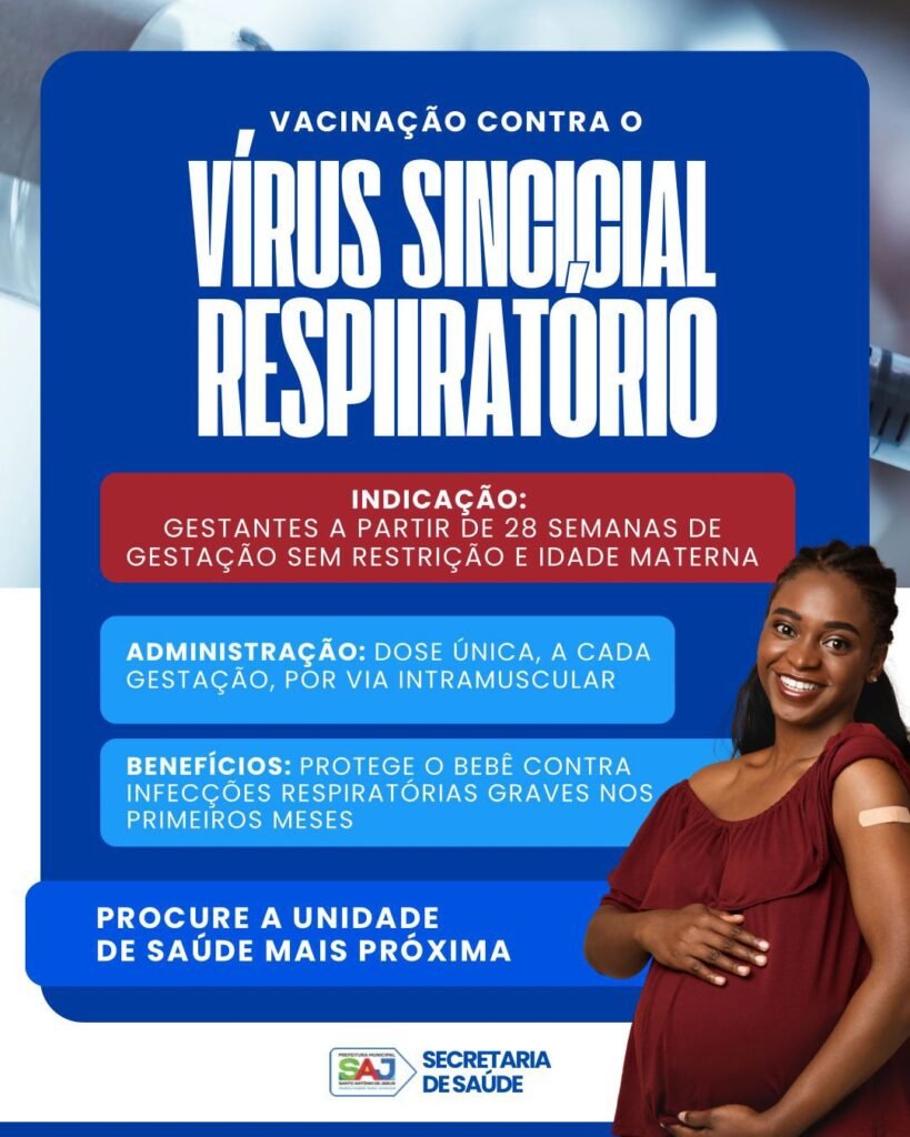 SAJ: Prefeitura informa sobre a disponibilização da Vacina contra Vírus Sincicial Respiratório (VSR) para gestantes a partir de 28 semanas