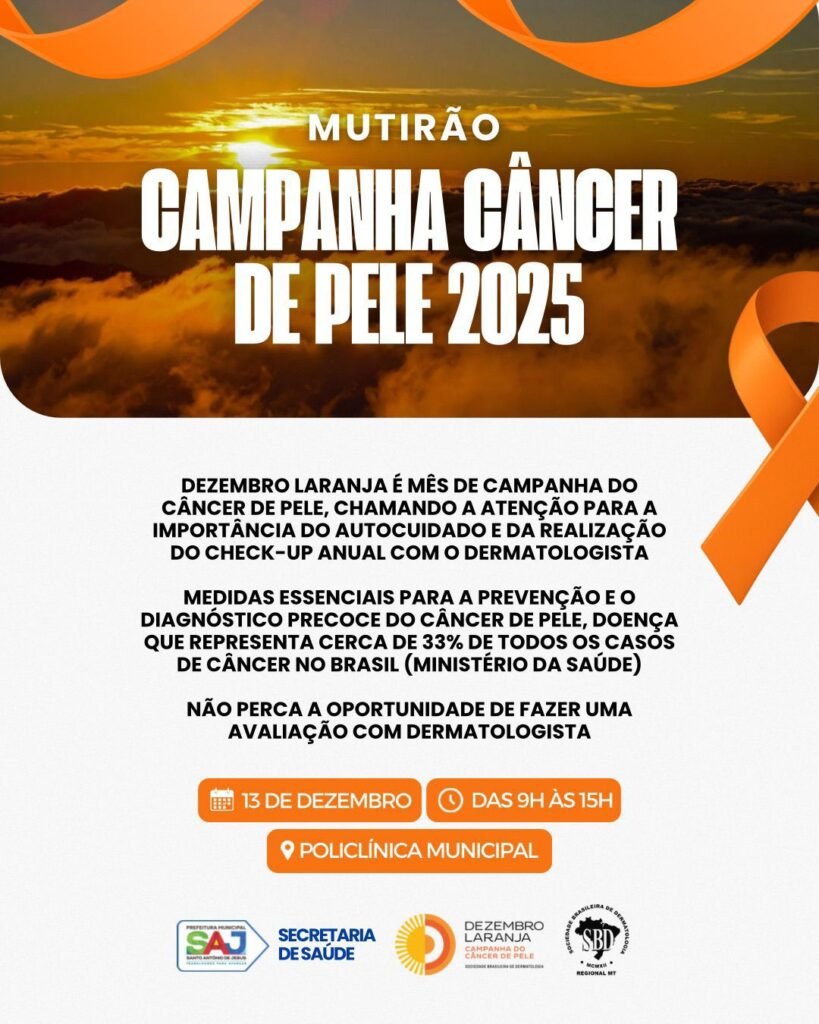 Prefeitura de Santo Antônio de Jesus realizará Mutirão do Dezembro Laranja, que reforça prevenção ao câncer de pele