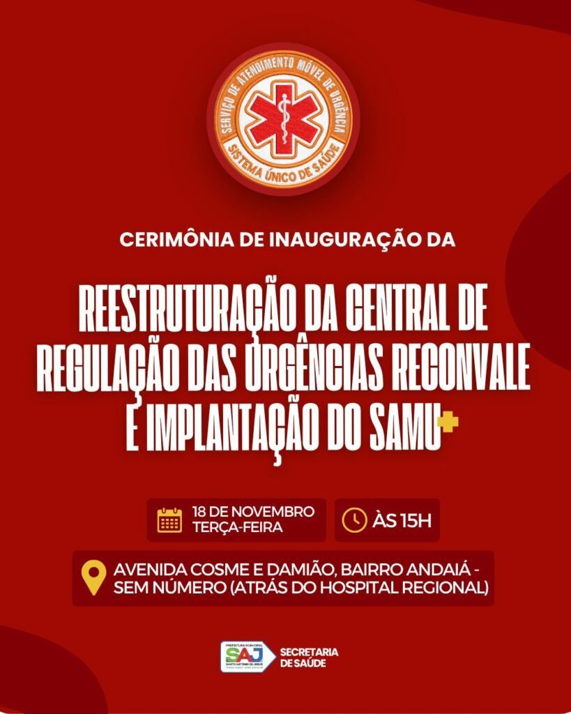 Prefeitura de Santo Antônio de Jesus realizará a inauguração da reestruturação da Central de Regulação das Urgências Reconvale e implantação do SAMU+
