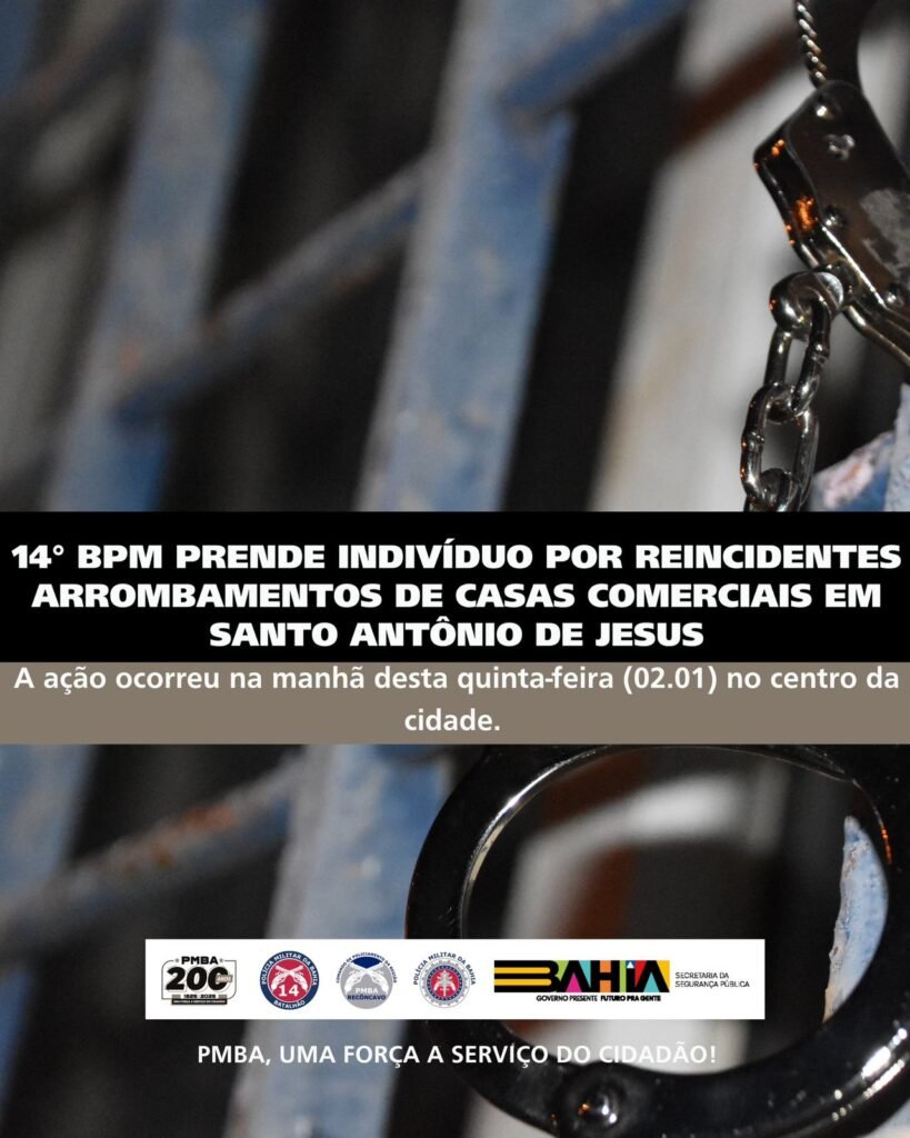 A Guarnição do 14⁰ BPM – [1ª Cia PP] foi acionada pelo CICOM para averiguar uma situação de violência doméstica e uso de arma de fogo, envolvendo um indivíduo que estava em gozo de indulto natalino na Av. Providência em Santo Antônio de Jesus. No local, o elemento foi flagrado destruindo o interior da residência, […]