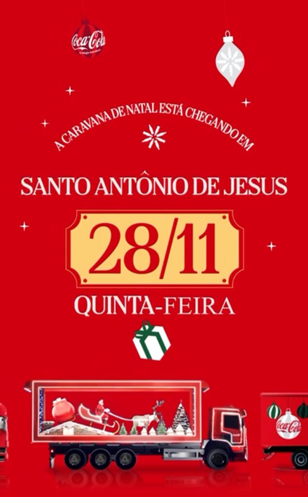 Abertura acontecerá na quinta-feira (28), na Praça Padre Mateus A Prefeitura Municipal de Santo Antônio de Jesus, através da Secretaria de Cultura, Turismo e Juventude (SCTJ) realizará a abertura da programação natalina com a passagem da Caravana Coca-Cola e apresentação do Coral Afro da Bahia. O evento, que está marcado para acontecer na quinta-feira (28), […]