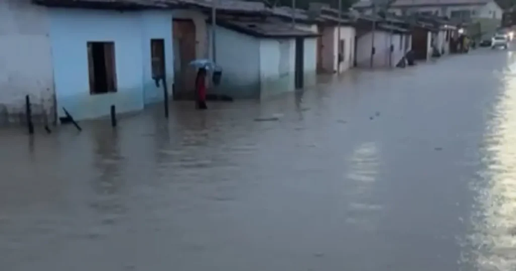 Uma enxurrada foi registrada na tarde desta terça-feira (3) em Varzedo, no Recôncavo baiano, após um forte temporal atingir o município. Ruas ficaram tomadas pela água, e moradores relataram dificuldades de circulação em diversos pontos da cidade. Com o grande volume de chuva concentrado em curto período, a água escoou