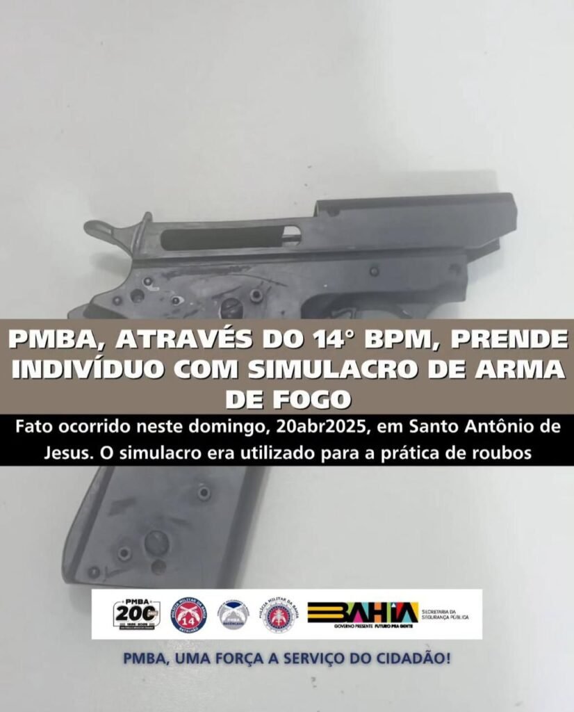 Segundo informações da PM, após denúncia anônima em que um indivíduo estaria em posse de uma arma de fogo ameaçando transeuntes, uma guarnição do Tático Móvel logrou êxito em identificar e prender o acusado, na Av. Juracy Magalhães, que se encontrava portanto um simulacro de arma de fogo, tipo pistola.