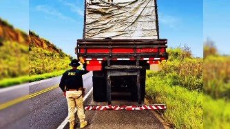 Durante a vistoria, os agentes identificaram que o caminhão estava com o licenciamento atrasado, o tacógrafo defeituoso, faixas refletivas em mau estado de conservação e pneus completamente desgastados, sem condições mínimas de uso. Outro fato foi a substituição da placa dianteira por um adesivo com a palavra “OBRIGADO”, o que impossibilitava a identificação do veículo.