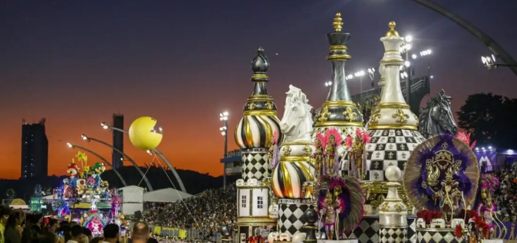 O samba-enredo da escola vencedora, “Rosas de Ouro em uma grande jogada”, teve como tema a história dos jogos e como as apostas tiveram impacto na humanidade.“O medo de perder não pode superar; A gana de vencer, o jogo vai virar; Rosas de Ouro, a grande jogada; Pode apostar”, diz o início da canção.