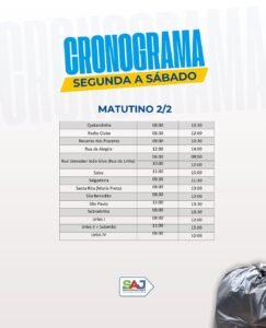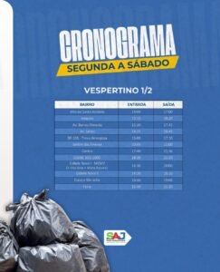 SAJ: Prefeitura alerta à população sobre os horários da coleta de resíduos, sob gestão da COPA Soluções Sustentáveis