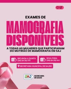 SAJ: Prefeitura informa que exames do Mutirão de Mamografia já estão disponíveis para retirada